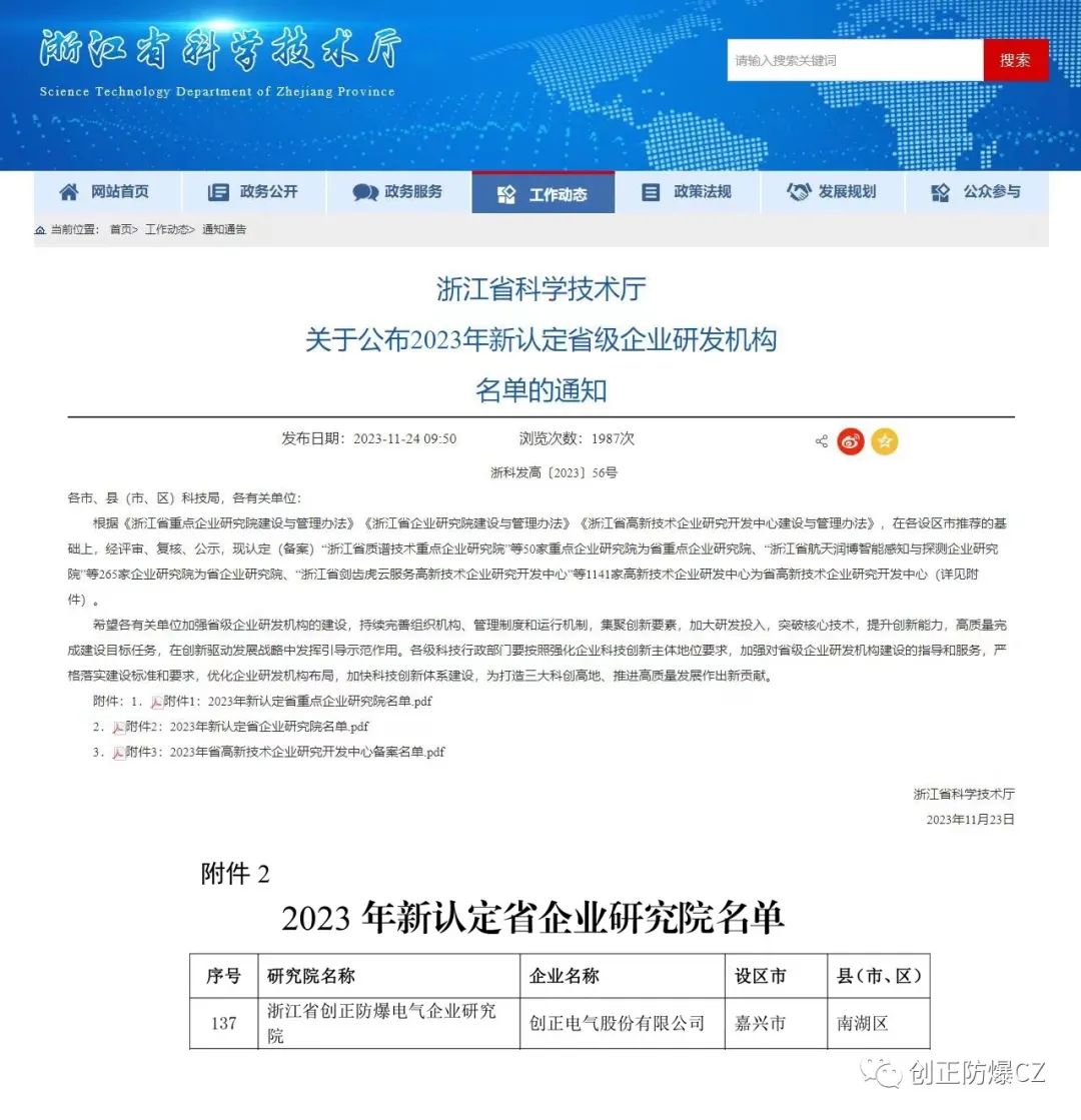 近日,浙江省科学技术厅公布了2023年新认定省级企业研发机构名单,钱柜QG777电气股份有限公司获得 “浙江省级企业研究院”荣誉称号。这是继荣获“国家高新技术企业”“浙江省级高新技术企业研究开发中心”和“浙江省专精特新企业”荣誉称号之后,对企业科研实力的又一次认可。