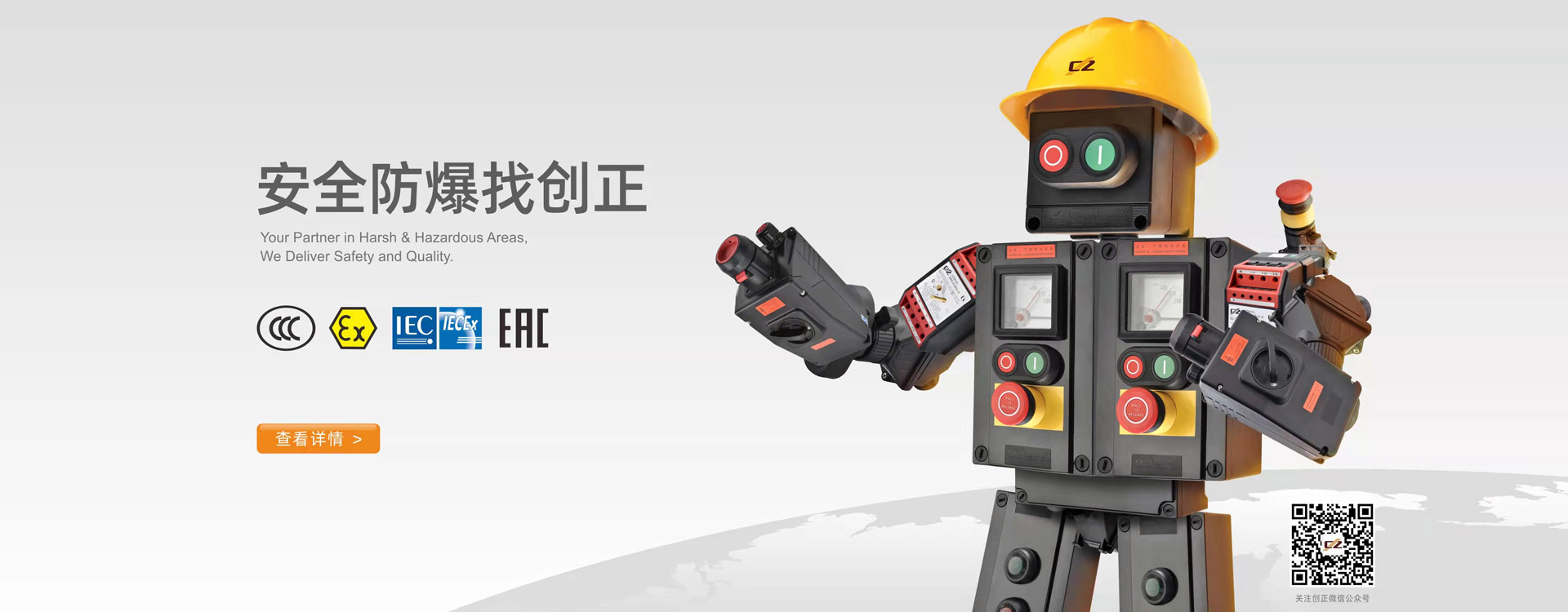 公司主营产品全面通过CCCEx防爆认证、ATEX欧盟防爆认证、IECEx防爆认证,部分产品通过EAC海关联盟防爆认证,巴西、德国TUV等认证。